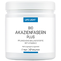 LIFE LIGHT® Akazienfasern Plus mit hochwertigen Bio-Akazienfaserpulver, Bio-Inulin und Vitamin C aus Bio-Camu Camu bieten eine natürliche und gut verträgliche Ballaststoffquelle, ideal zur täglichen Unterstützung einer gesunden Verdauung.