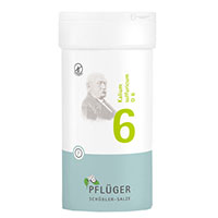 • Das Schüßler-Salz Nr. 6 Kalium sulfuricum von Pflüger ist das Salz des Zellinneren und unterstützt die Regeneration. Kalium sulfuricum kommt im Körper in allen eisenhaltigen Zellen und in der Bauchspeicheldrüse vor.