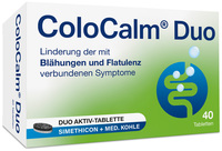 ColoCalm® Duo ist ein Medizinprodukt, das zur Linderung der Symptome von Blähungen und Flatulenz aufgrund der Ansammlung von Gasen beiträgt. ColoCalm® Duo wirkt gegen Krämpfe und damit verbundene Schmerzen und vermindert Flatulenz und Blähungen. Die innovative 2-Phasen-Tablette enthält in beiden Phasen die Wirkstoffe Simethicon und medizinische Kohle für eine schnelle und langanhaltende Wirkung. Die Sofort-Phase setzt die Wirkstoffe innerhalb von 15 Minuten im Magen frei. Die Freisetzung der Depot-Phase erfolgt innerhalb von 1 Stunde im Darm. Beide Wirkstoffe wirken rein physikalisch im Verdauungstrakt und werden nicht vom Körper aufgenommen.