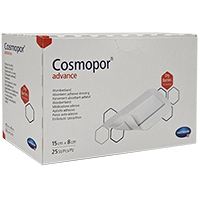 Cosmopor Advance ist mit der innovativen DryBarrier Technologie ausgestattet, die ermöglicht, dass das Wundexsudat in das Wundkissen aufgenommen, aber nicht wieder abgegeben wird - selbst unter Druck. Diese Kombination von hoher Saugkapazität und geringster Rücknässung erlaubt, dass der Post-OP-Verband länger auf der Wunde verweilen kann. Bei Advance handelt es sich um einen sterilen selbstklebenden Wundverband aus weichem Trägervlies, ausgestattet mit einem hoch absorbierenden Wundkissen.