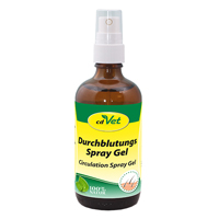Durchblutungs Spray Gel, die innovative Weiterentwicklung zur Pflege aus dem Hause cdVet. Durch die Sprühtechnik ist es einfach und schnell in der Handhabung. Durchblutungs Spray Gel zieht sofort in die Haut ein, ohne dabei fettende Rückstände zu hinterlassen. Es versorgt die Haut mit Nähr- und Pflegesubstanzen, und fördert intensiv die Durchblutung, ohne die Haut spröde zu machen. Die eingesetzten Öle halten die Haut natürlich geschmeidig. Durchblutungs Spray Gel ist besonders pflegend, erfrischend und wohltuend. Pfefferminz- und Eukalyptusöl haben zudem einen kühlenden Effekt auf der Haut. Die Durchblutung ist ein wesentlicher Faktor im Ablauf aller Körperfunktionen. Denn nur da wo Blut hinkommt, kann der Körper selbst Heilungsprozesse einleiten.