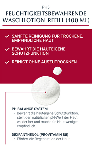 Die Waschlotion ist ein seifenfreies Reinigungsprodukt und ist daher besonders für die milde Reinigung von Gesicht und Körper geeignet. Der natürliche pH-Wert und Dexpanthenol bewahrt nachweislich die natürliche Schutzfunktion und Widerstandskraft der Haut. Die Formel sorgt für eine sanfte Reinigung mit extra milden, seifenfreien Tensiden.
