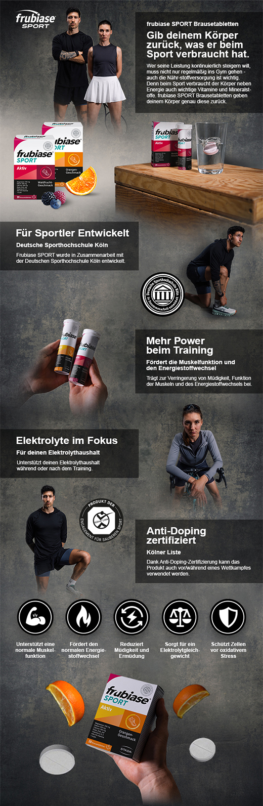 • Gut versorgt mit einer Brausetablette täglich vor, während oder nach dem Sport