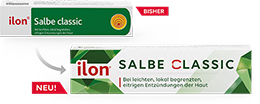 Die ilon Salbe classic erscheint nach und nach im neuen, frischen Look. In der Übergangszeit kann es sein, dass Sie die bisherige Verpackung erhalten – doch egal welche Packung: Der Inhalt ist unverändert und zuverlässig wie gewohnt.