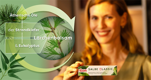 Seit 1929 steht ilon® für natürliche Wirksamkeit bei Hautentzündungen. Die ilon® Salbe classic ist die Weiterentwicklung der bewährten ilon Abszess-Salbe. Ihr zentraler Wirkstoff, der Lärchenbalsam, wird schonend und von Hand ausschließlich in Tirol geerntet.