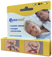 Eine Nozovent Nasenklammer besteht aus zwei kleinen Kunststoffplatten, die mit einem elastischen Bügel verbunden sind. Sie wird einfach in die Nasenlöcher eingeführt, wodurch die Nasenflügel angehoben und die Nasenöffnung erweitert wird. Das Einatmen durch die Nase wird deutlich erleichtert.