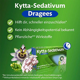 Kytta-Sedativum® Dragees, pflanzliches Arzneimittel mit Baldrian, Hopfen und Passions- blume zur Anwendung bei Unruhezuständen und nervös bedingten Einschlafstörungen