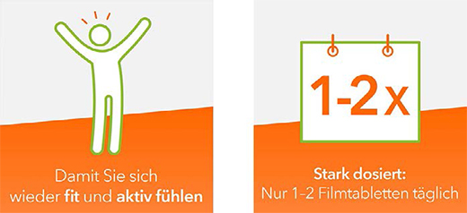 Hinter häufiger Müdigkeit, Konzentrationsproblemen, blasser Haut oder einem geschwächten Immunsystem kann ein Eisenmangel stecken. Um diesen auszugleichen, eignen sich Eisentablettenratiopharm ® N 50 mg Filmtabletten. Erwachsene nehmen täglich 1 bis 4 Filmtabletten und Kinder ab einem Körpergewicht von 25 kg 1 bis 3 Filmtabletten. Am besten nehmen Sie Eisentablettenratiopharm ® 50 mg Filmtabletten mit einem Glas Orangensaft ein, da der Körper Eisen in Verbindung mit Vitamin C besser aufnehmen kann.