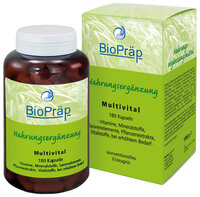 BioPräp Multivital Kapseln liefern eine umfangreiche Versorgung mit Vitaminen, Mineralstoffen und Spurenelementen, kombiniert als physiologisch wirksame Rezeptur. Bereits 3 Kapseln decken den täglichen Bedarf.