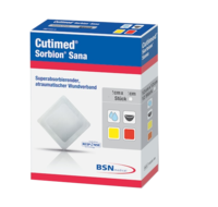 Cutimed Sorbion Sana ist ein superabsorbierender, atraumatischer Wundverband zur Versorgung stark bis mäßig exsudierender Wunden. Durch die spezielle dreidimensionale Struktur seiner Hülle wird die Kontaktfläche mit dem Wundgrund minimiert. Daher ist Cutimed Sorbion Sana besonders gut für die Behandlung von Wunden geeignet, bei denen ein atraumatischer und schmerzarmer Verbandwechsel im Vordergrund steht, z.B. Wunden mit uneinheitlichem Heilungsverlauf (Epithelisierungsinseln/trockenere Wundbereiche), in der Palliativversorgung oder bei schmerzempfindlichen Patienten. Die hydrokinetische Fasermatrix mit integrierten, stark wasserspeichernden Polymeren (Superabsorbern) schafft ein feuchtes Wundmilieu, absorbiert Wundexsudat vertikal und schließt es sicher im Produktkern ein. Auf diese Weise kann das Risiko von Mazerationen reduziert und der Heilungsprozess optimal unterstützt werden.