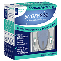 Die Snoreeze-Schnarchschiene wurde entwickelt, um lautes Schnarchen und leichte bis mittlere Schlafapnoe zu reduzieren. Sie kann exakt an Ihren Mundraum angepasst werden, zieht Ihren Unterkiefer sanft nach vorne und öffnet so den Luftweg. Sie hilft Ihnen während es Schlafes wieder leichter und ruhiger zu atmen.