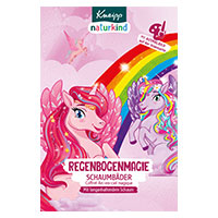 Die Kneipp® naturkind Geschenkpackung Regenbogenmagie bietet Badespaß mit 3 Schaumbädern passend zur magischen Themenwelt. Fliege mit den Wolken um die Wette und dem bezaubernden Regenbogen entgegen mit dem Kneipp® naturkind Schaumbad Funkelmähne oder tauche in schöne Meerestiefen und träume von funkelnden Nixen im Ozeanparadies mit dem Kneipp® naturkind Schaumbad Regenbogen-Nixe.