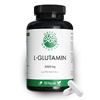 Hochdosierte GREEN NATURALS L-Glutamin Kapseln enthalten hochwertiges L-Glutamin aus natürlicher Fermentation zur Unterstützung muskulärer Regeneration und Darmgesundheit:
