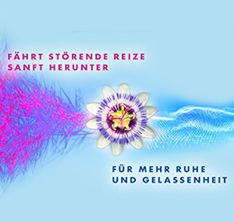 Dabei nimmt die Passionsblume effektiv Einfluss auf den reizhem-menden Neurotransmitter Gamma-Aminobuttersäure (GABA) im zentralen Nervensystem. GABA filtert Reize und fördert so Beruhi-gung und Entspannung. Die Passionsblume sorgt dafür, dass die Konzentration von GABA erhöht wird.1 Störende Reize werden so heruntergefahren und Betroffene können Ruhe und Gelassen-heit finden.