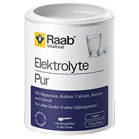 Raab Elektrolyte pur ist ein Pulver für die Zubereitung eines isotonischen Elektrolytgetränks mit Mineralstoffen.