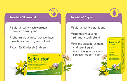 Sedariston® Tropfen für die Nacht sind ein pflanzliches Arzneimittel zur Behandlung von nervös bedingten Einschlafstörungen und Unruhezuständen. Die Kombination aus Baldrian und Melisse wirkt beruhigend, löst Anspannung und hilft dem Körper, sanft in den Schlaf zu finden: Baldrian unterstützt die natürliche Schlaffunktion und fördert das Durchschlafen. Melisse wirkt entspannend und lindert nervöse Begleiterscheinungen, die den Schlaf stören können.