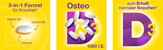 3 Vitamin D3, K2 und Calcium tragen zum Erhalt normaler Knochen bei.